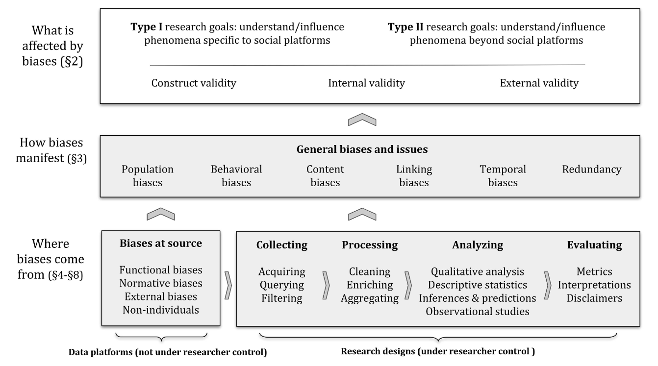 Olteanu, A., Castillo, C., Diaz, F., & Kıcıman, E. (2019). Social data: Biases, methodological pitfalls, and ethical boundaries.